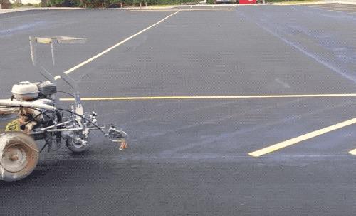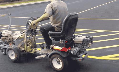 如果要畫更寬的線,比如人行道的斑馬線,一般會上個大漏斗推車,人推着車筆直走過,底下圖案缺損的人行道又潔白如雪的恢復如新~我第一次見着玩意兒,還是小學或初中看人在操場上劃拉籃球場三分線的半圓......