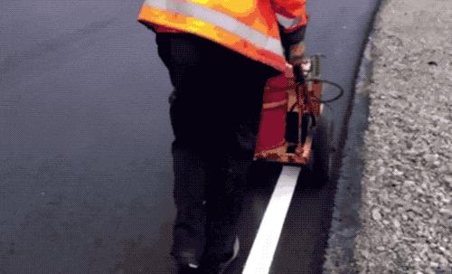 之前有讀者在後臺問我,馬路上的白線是咋畫的?我在杭州的時候是親眼見過的。翻了翻相冊竟然沒找到,肯定是當時手機沒電了......那時看到的是機器和手工都有,大概找了個類似的,只見工人手持一漏斗置於地,邊走邊移動,徐以杓酌油(漆)瀝之,一條筆直的線就畫好了。