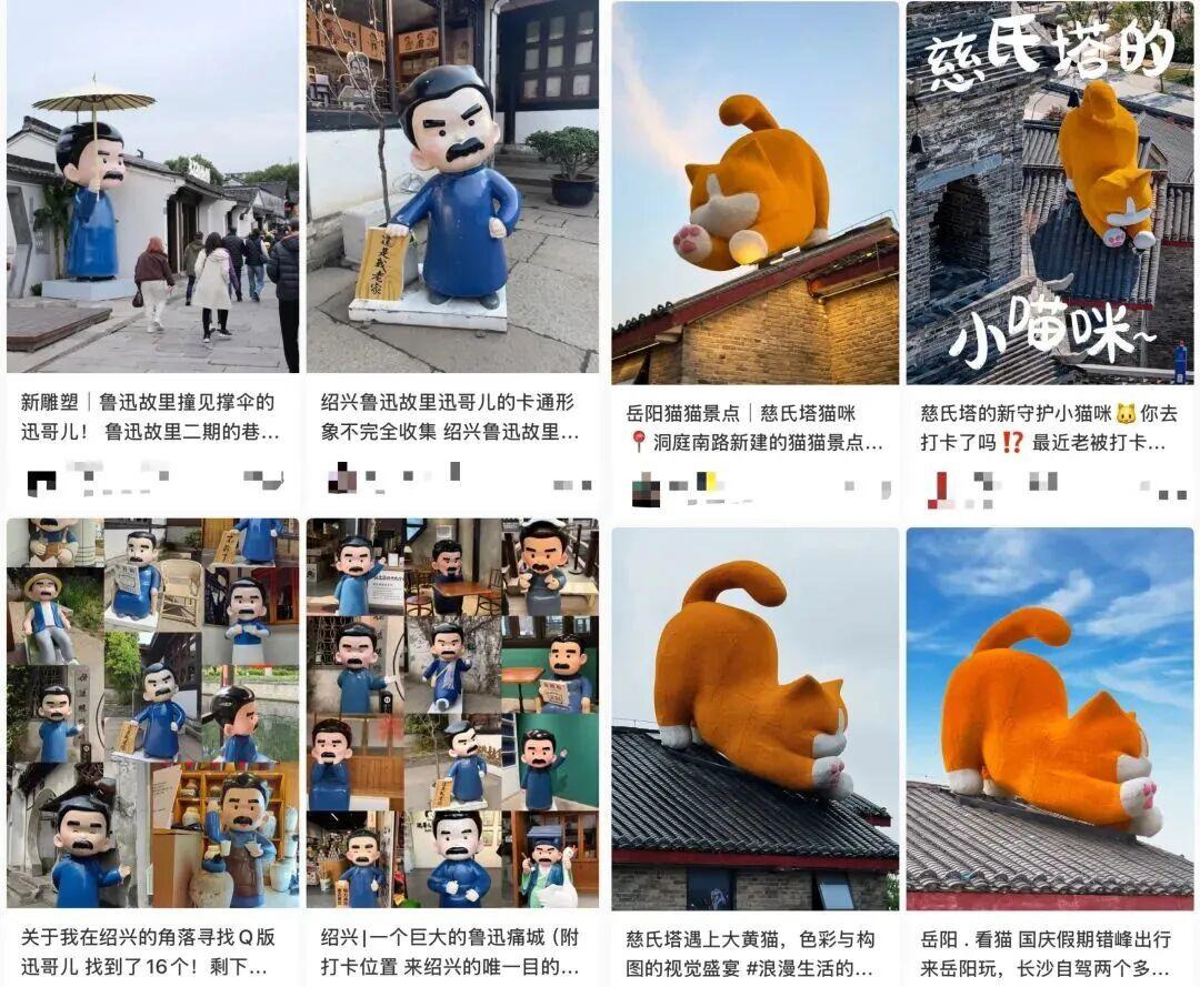 現在,能讓年輕人願意掏出手機記錄,並且能發在社交媒體上火起來、吸引更多遊客的雕塑,是紹興的“迅哥兒”和岳陽的“大胖橘”。