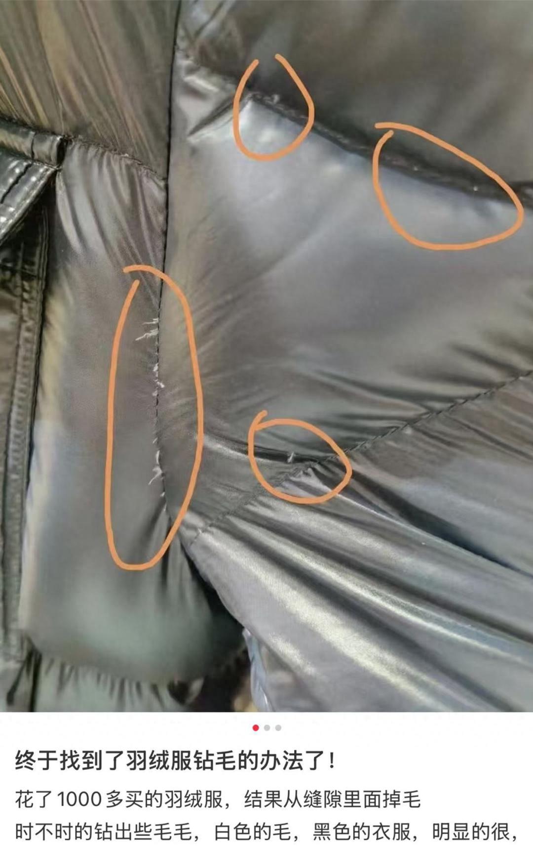本該光潔利落的羽絨服面料,卻有小小的尖尖鑽出來,用手一抽,就是一朵絨毛,這不僅影響美觀,有時甚至會引起皮膚不適,還會讓我們心裏不爽——羽絨服不便宜,這下充的絨子又偷偷逃跑變少了……