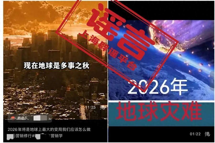 值得關注的是,在社交平臺,除了“地球失重”這條謠言外,還有不少類似“小行星撞擊地球”“地球大災難”的消息。記者覈查發現,這些消息都是“三無”——無權威出處、無真實畫面、無科學依據。文字、圖片、視頻等大多由AI生成,並且大肆渲染地球毀滅的恐怖畫面。
