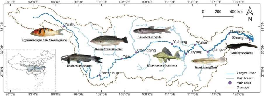 長江流域部分常見入侵物種,最右邊就是尖齒胡鯰。圖中的魚類位置與分佈無關丨參考文獻[27]
