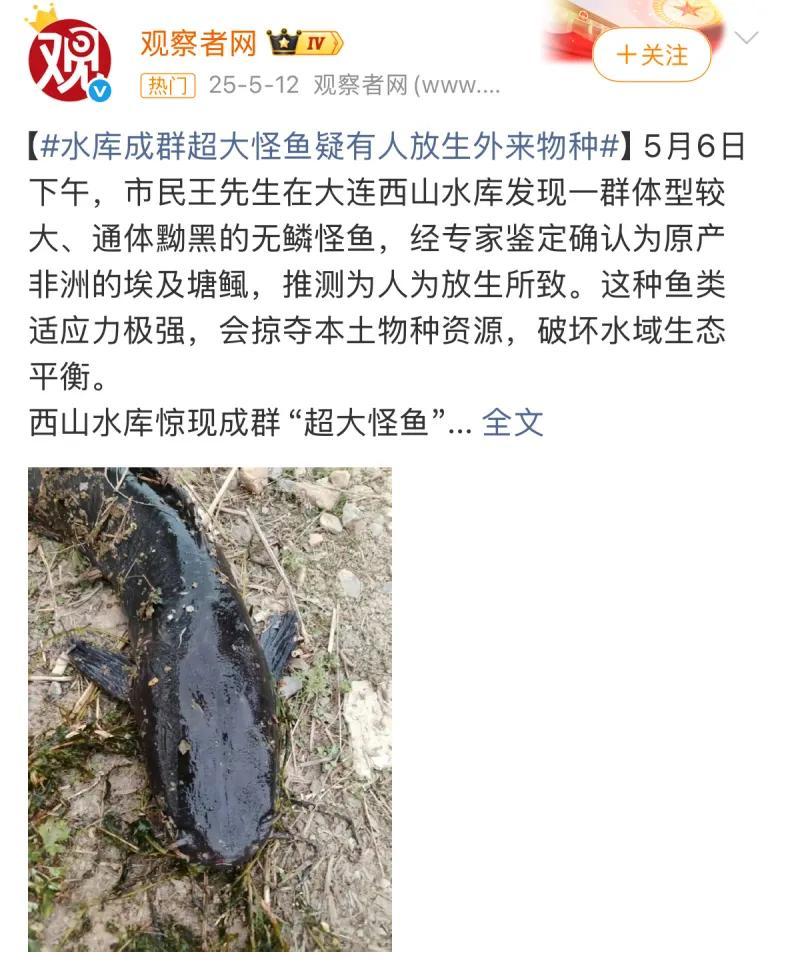 2025年5月,大連市民在水庫發現大羣尖齒胡鯰,引發廣泛關注