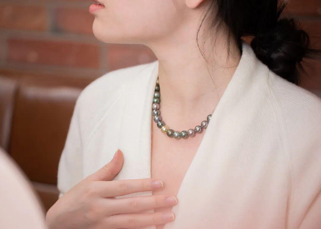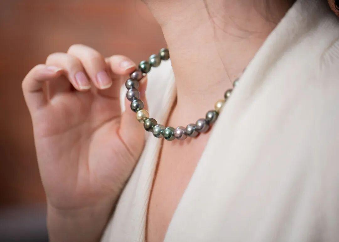 我們這款人造大溪地珍珠,也復刻了它的伴色,視覺上非常豐富,光下還有多色一起的暈彩。