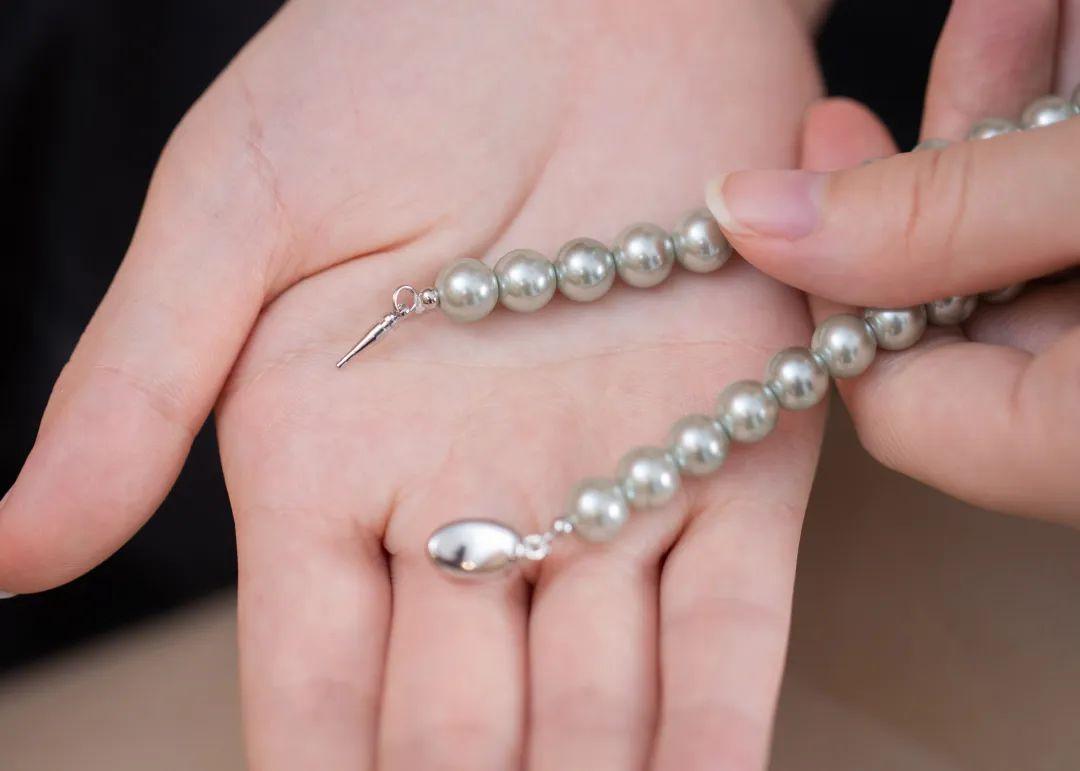 全珠項鍊選用的是麪包扣設計,在使用時方便摘戴,捏住卡扣就能輕輕鬆鬆打開,自己一個人也能很輕鬆的佩戴好。