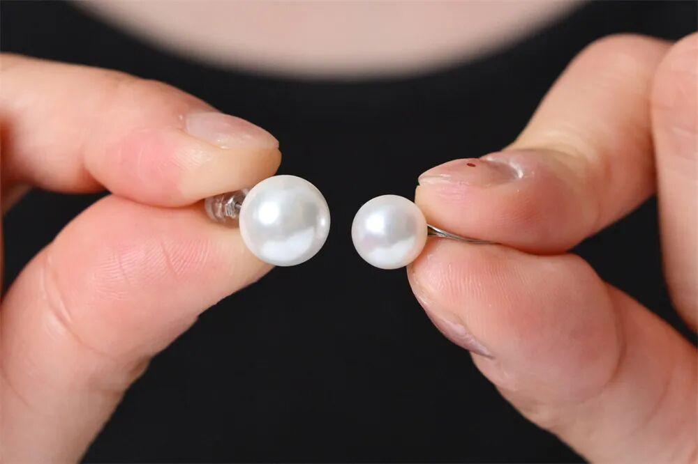 同事用自己的真·珍珠對比,真的是很相近,但是比上百元一副的天然珍珠款更便宜。