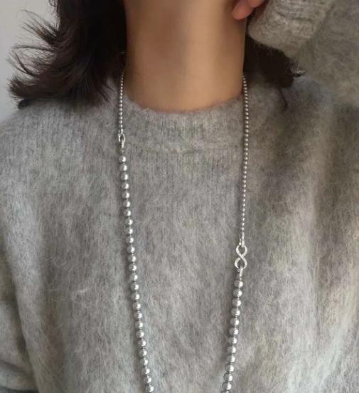 8字扣頭做工精美, 兩條可以疊戴、3mm、6mm單獨佩戴、交叉扭結佩戴、毛衣鏈的長串鏈接戴、Y字鏈戴法。