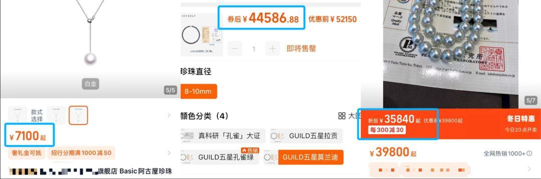 按照這個標準去搜, 有名的Akoya、大溪地、澳白珍珠,帶專業機構證書的,一顆10mm左右的要7000+,一整串要幾萬塊甚至十幾萬!!