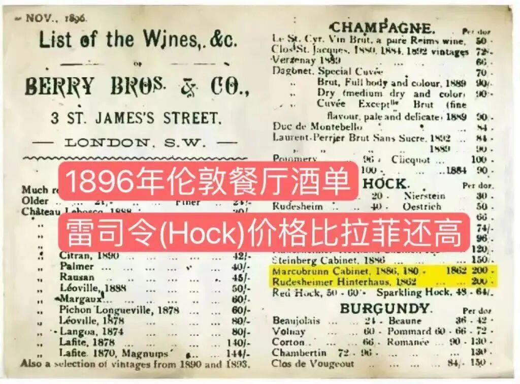 早在19世紀末,雷司令(Hock)品種便已經躋身於世界名貴葡萄酒之列,市售價格一度比拉菲還高!