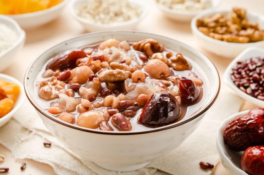 在《東京夢華錄》中,“臘八粥”是僧家的“七寶五味粥”(佛教典籍中經常出現“七寶”的概念,本指七種珍寶,也可喻指某物珍貴;不過七寶粥裏也有可能真有七種佐料,因爲宋朝還流行一種“七寶茶”,其中就實實在在地放了七種香料,我是沒喝過,也不知它會不會串味),不過俗世的百姓也喜歡跟着做。周密《武林舊事》卷三還記下了南宋人做臘八粥時常用的幾味原料:胡桃、松子、乳蕈(一般認爲是小蘑菇)、柿子和栗子。