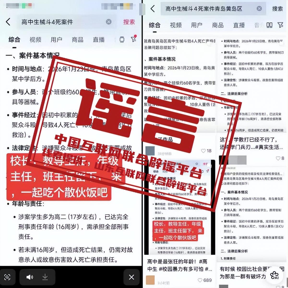 闢謠:“青島黃島區高中生械鬥致4人死亡”系AI生成