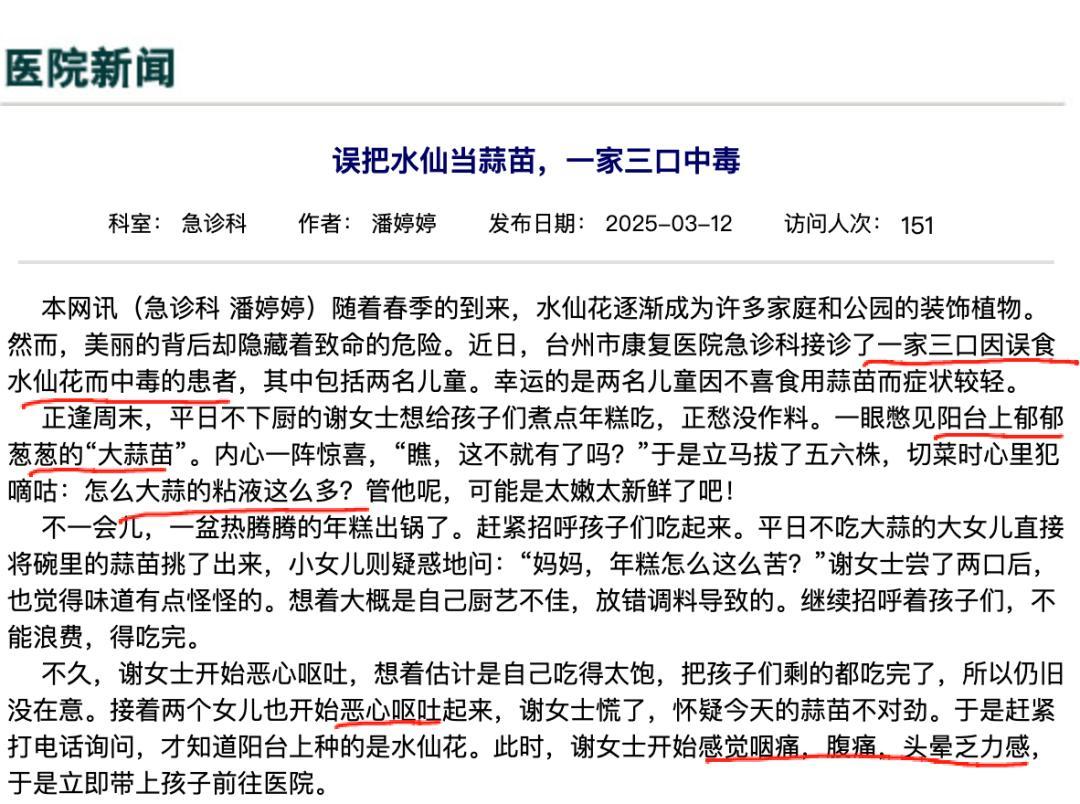 把水仙葉子當蒜苗、當韭菜的中毒案例,也是年年發生。