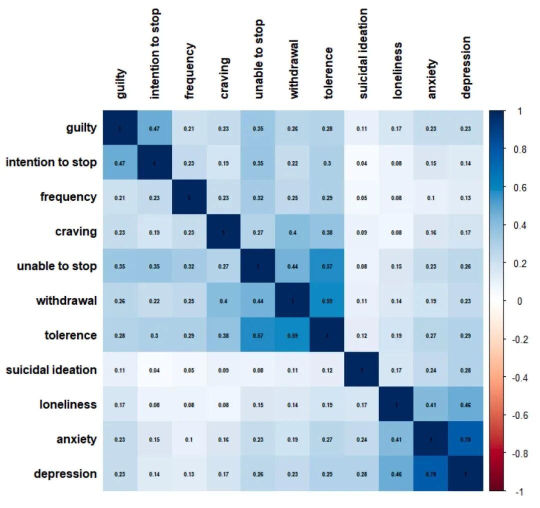 研究人員通過問卷調查進一步探究了青年羣體中的孤獨感、抑鬱症狀、焦慮症狀甚至自殺意念,發現奶茶成癮與多種不良心理健康狀況具有顯著的相關性。