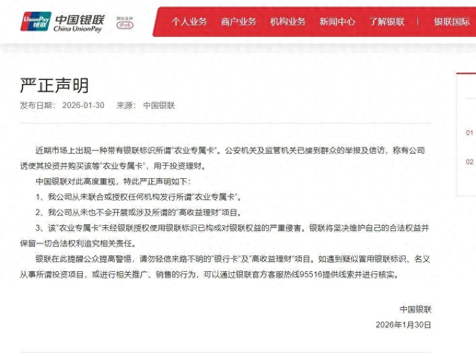 中國銀聯對此高度重視,特此嚴正聲明如下: