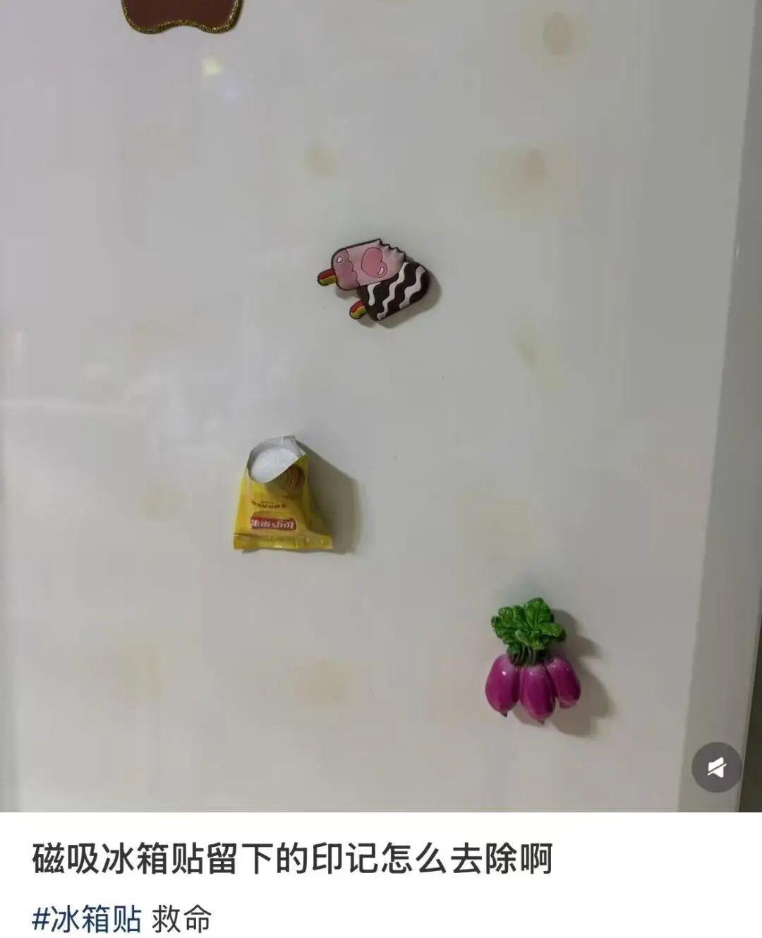 萬能網友給出的解決方案是:冰箱貼和冰箱門之間用美紋紙/保鮮膜隔一下;或者永遠不挪冰箱貼,把髒的地方永遠蓋住。