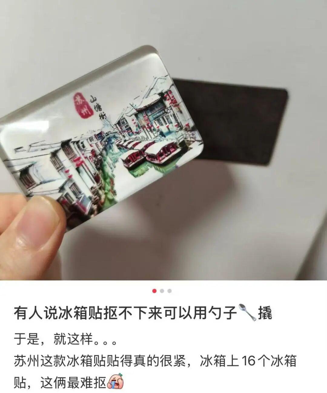 還有的冰箱貼用的是又薄又大的磁鐵,粘合用的膠水滲入了磁鐵中,給磁力疊上了buff。