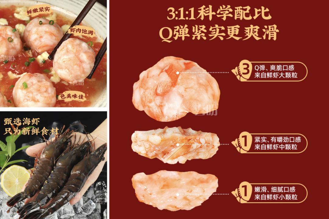喜盼蝦滑,蝦肉飽滿,鮮嫩緊實,全部採用新鮮海蝦製作,一口咬開,還能看到裏面大粒的蝦肉,喫得停不下來。