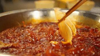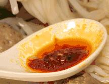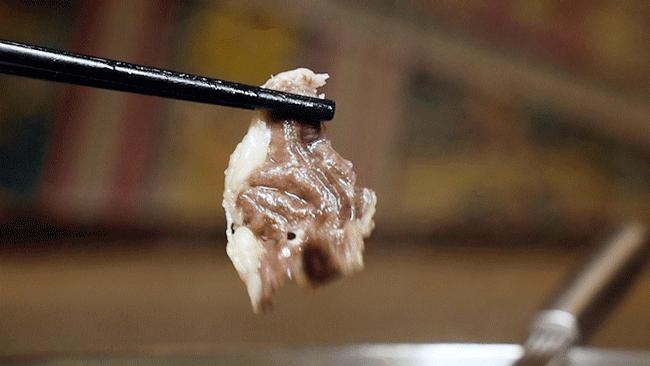 像夾麪條一樣下牛肉,在湯裏稍稍撥散開,一大碗撈出來,趁着熱氣在配好的調料一滾,食肉星人看了眼冒金星。