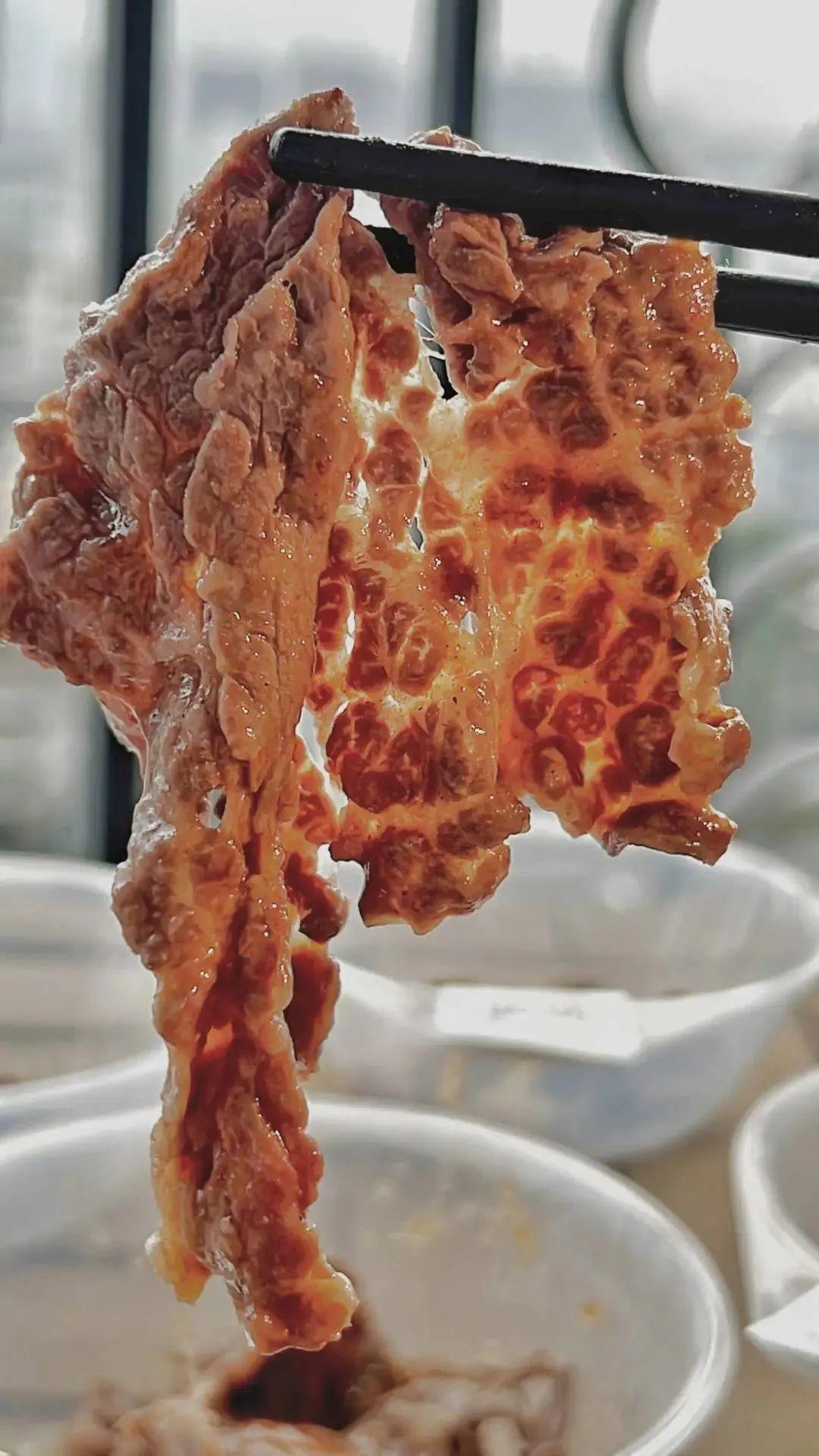 一口咬下去,牛肉化身出彈牙的質感,“呲”地一下,肉汁便向四周爆開,牛肉的鮮香瞬間充斥了整個口腔。
