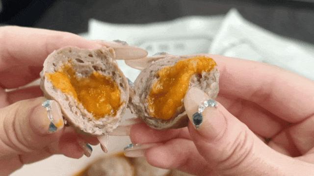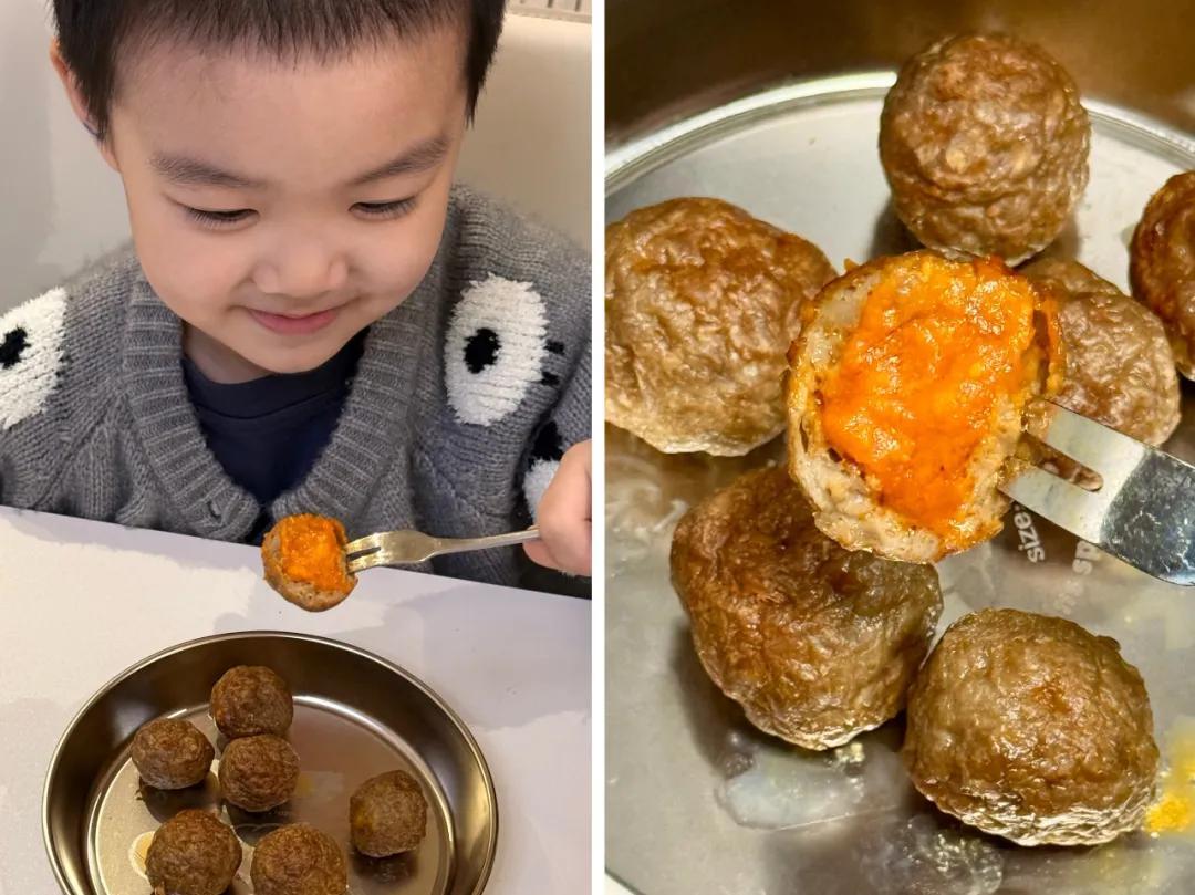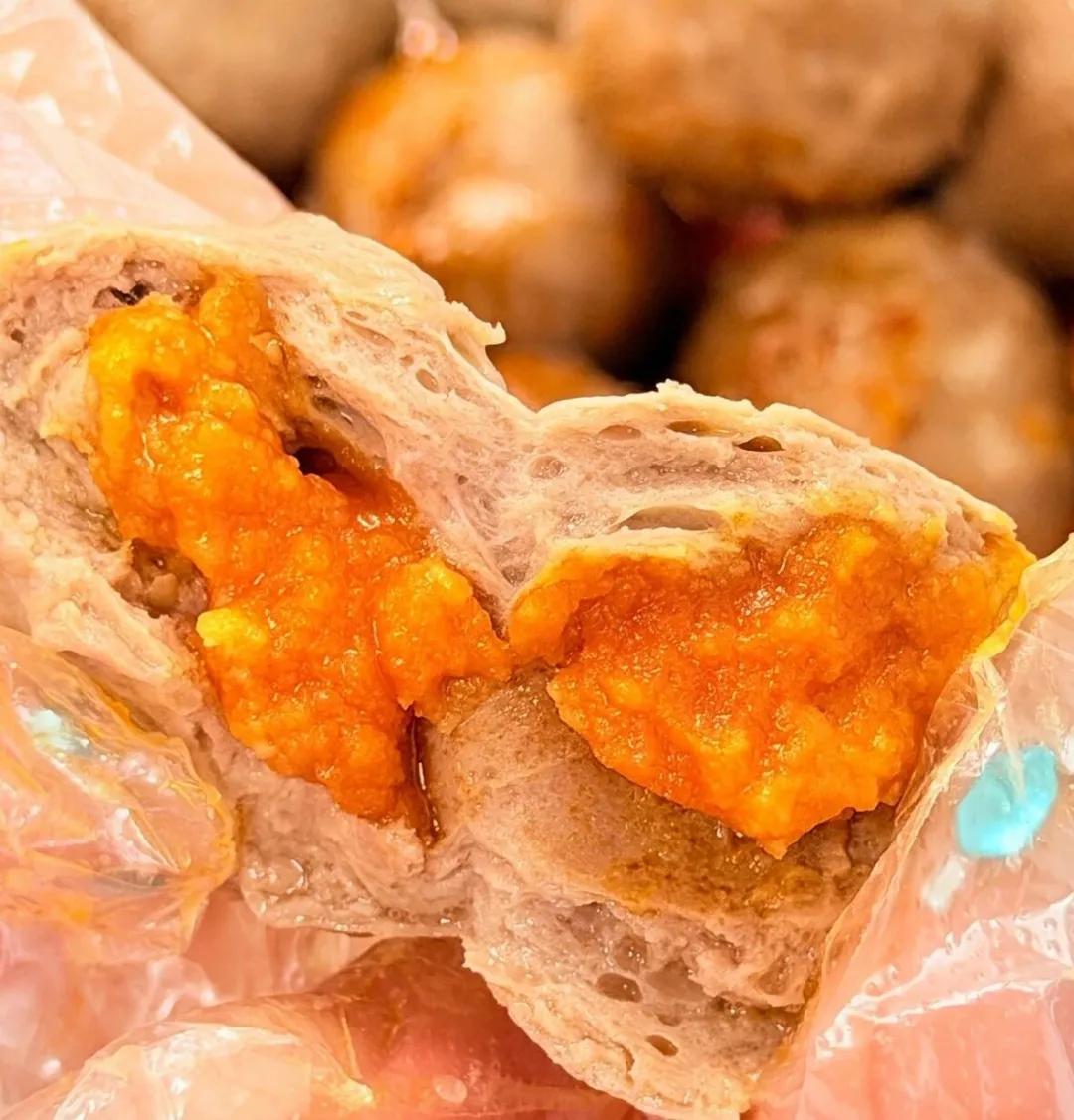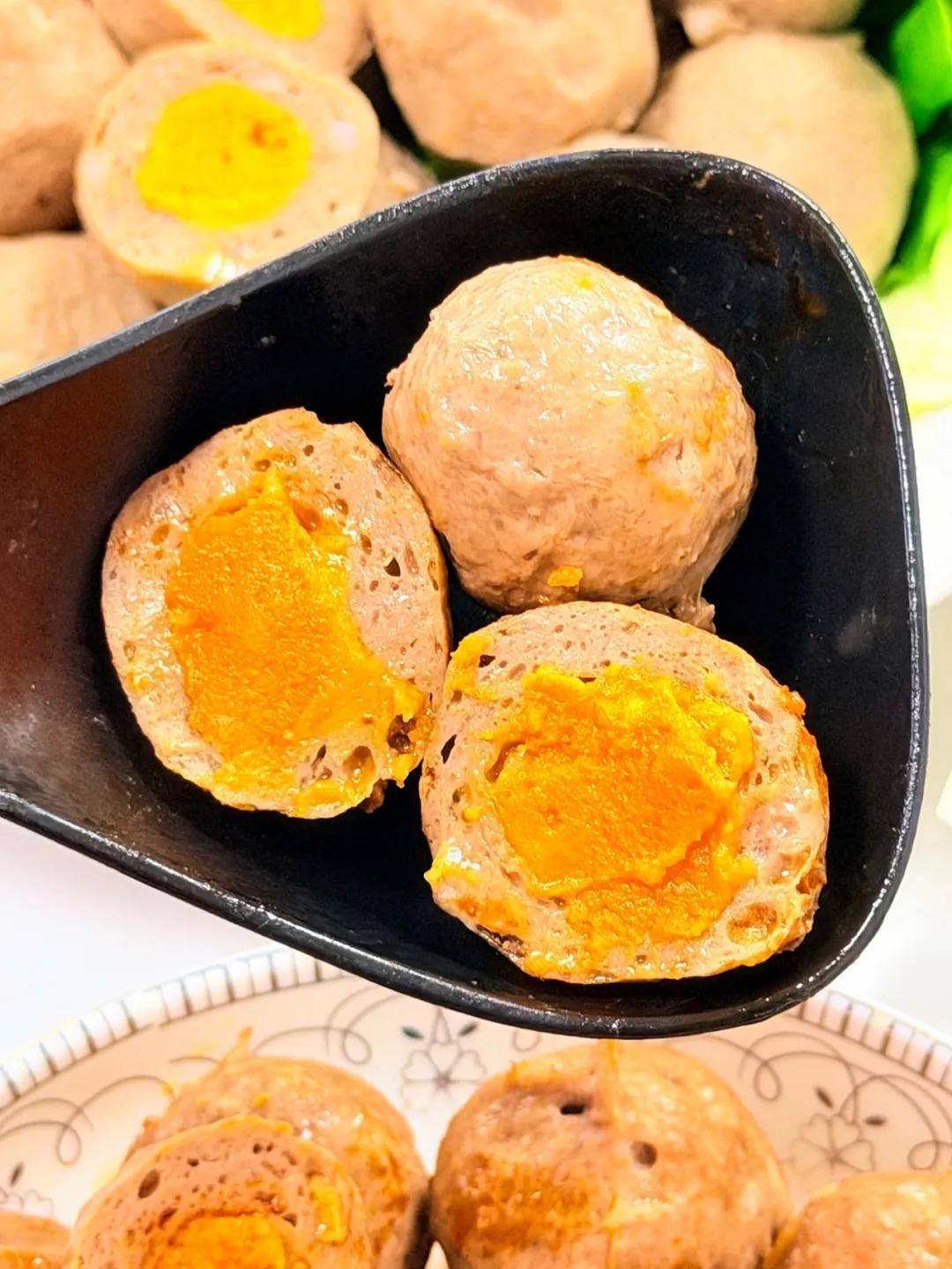 外層是牛肉丸,裏面卻藏着一團酥香綿密、金燦燦的鹹蛋黃內餡。