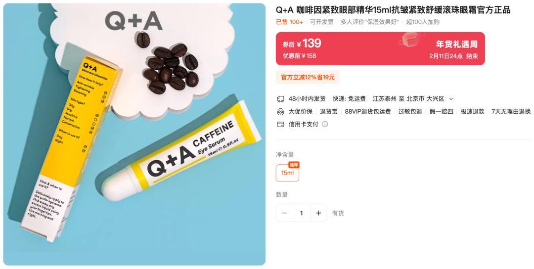 朋友們,送的這支眼部精華,現在年貨節活動價還要139元!