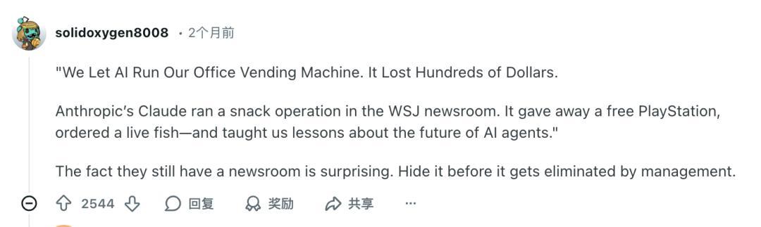 “比起AI中了人類的混亂這件事,WSJ還有編輯部更讓我驚訝。”|Reddit