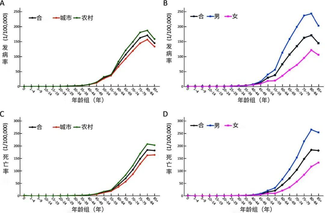 不論城鄉、不論性別,胃癌的發病和死亡在40歲之後上升明顯|原圖:參考資料4