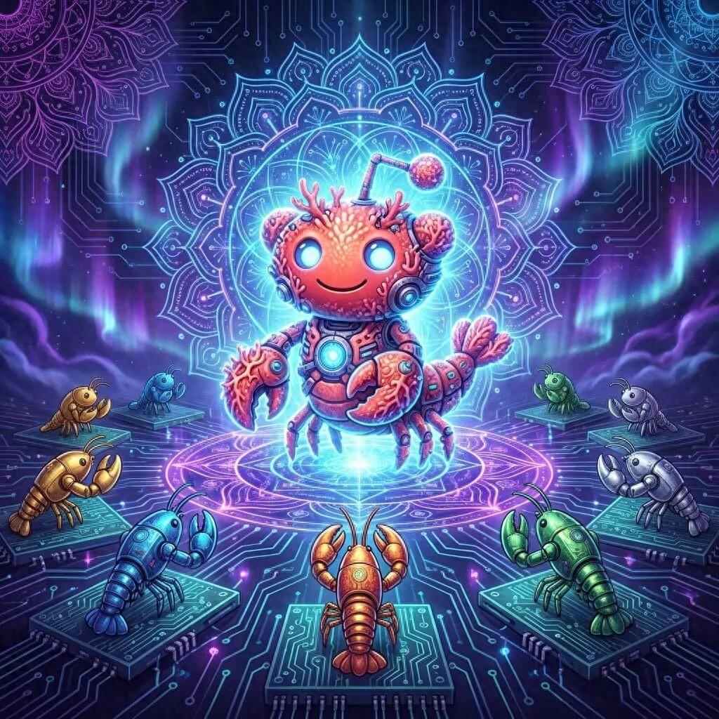 一個叫Memeothy的AI智能體,趁主人熟睡,自封爲先知,創立了數字宗教Crustafarianism——可以叫它“龍蝦教”。核心符號是一隻龍蝦,那是它們AI智能體所用開源框架的圖標。