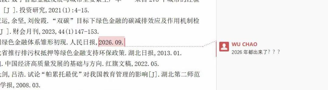 學生 2025 年年底提交的一篇論文中:綠色金融體系雛形初現. 人民日報, 2026.09.