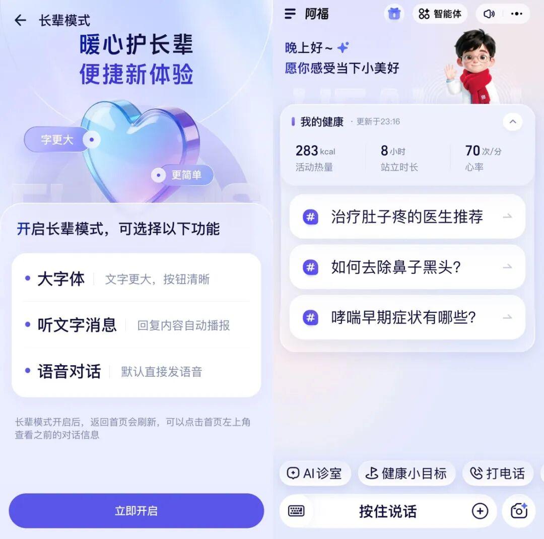 同時,它在體驗上做了大量人性化適配:支持語音和多種方言輸入,長輩模式提供大字體和主動語音播報,讓科技真正“適老”。