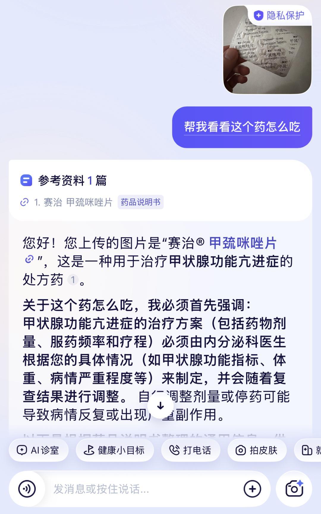 對於家裏那些已經開封、找不到說明書的藥,直接拍攝鋁箔藥板背面的信息,它也能準確識別藥品名稱和關鍵用途,並提醒“請覈對藥品是否在保質期內及具體用法”。