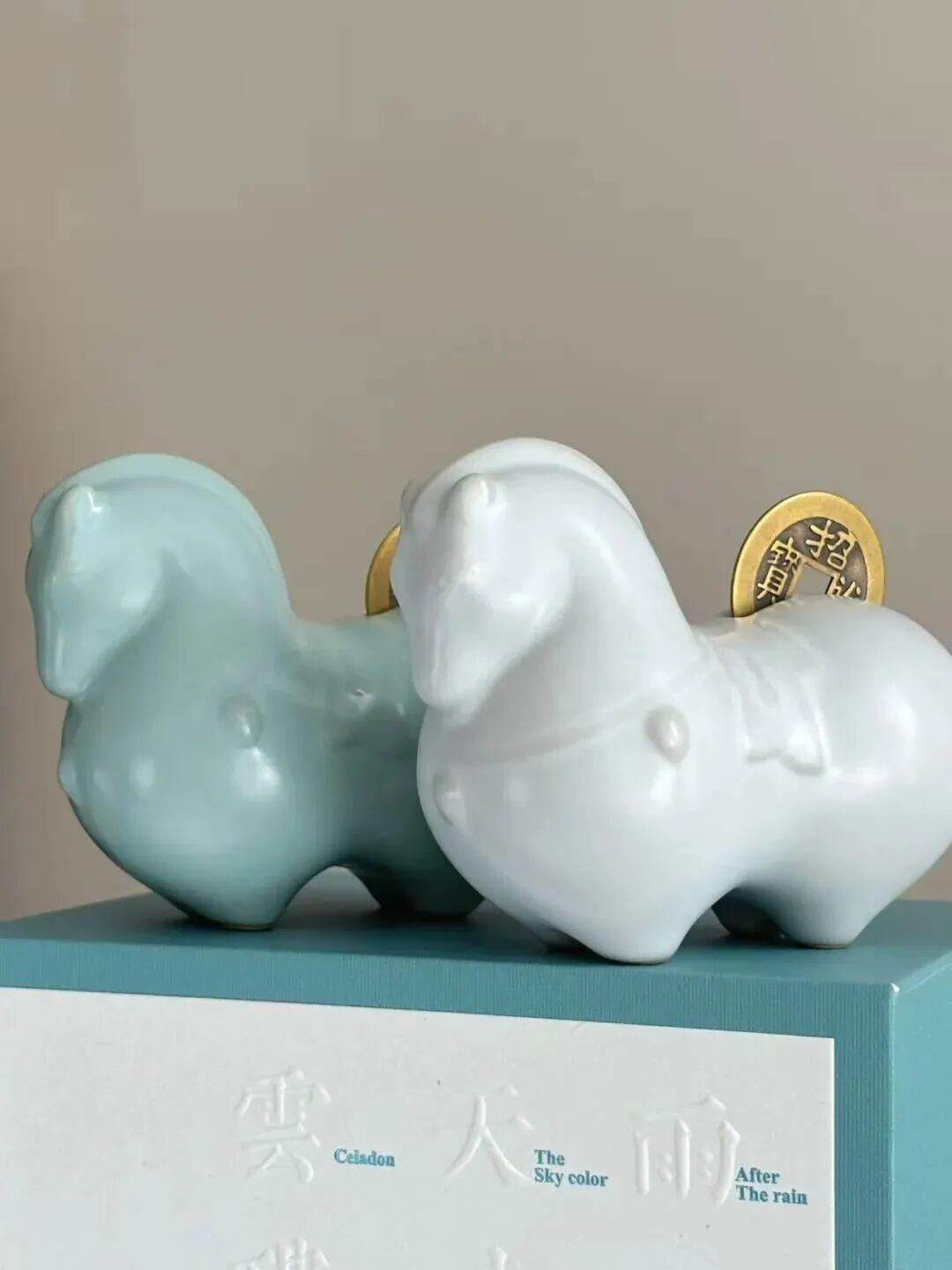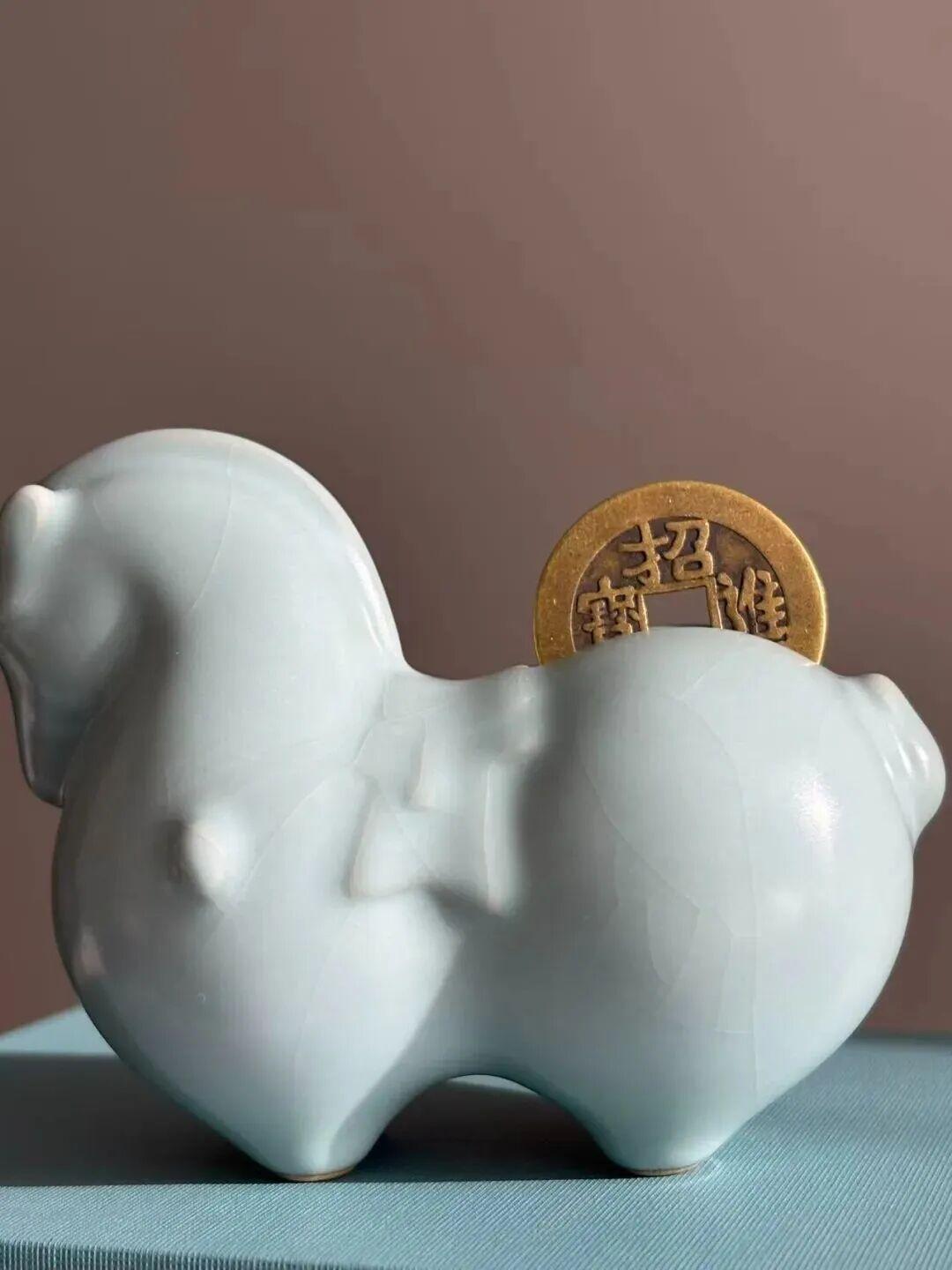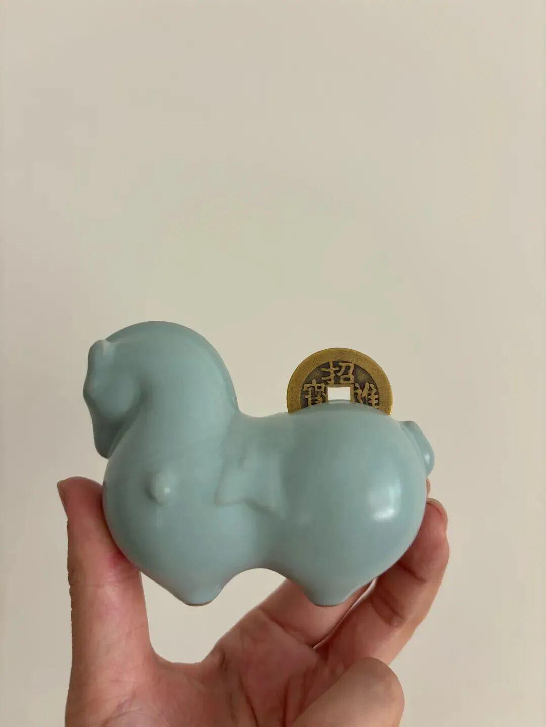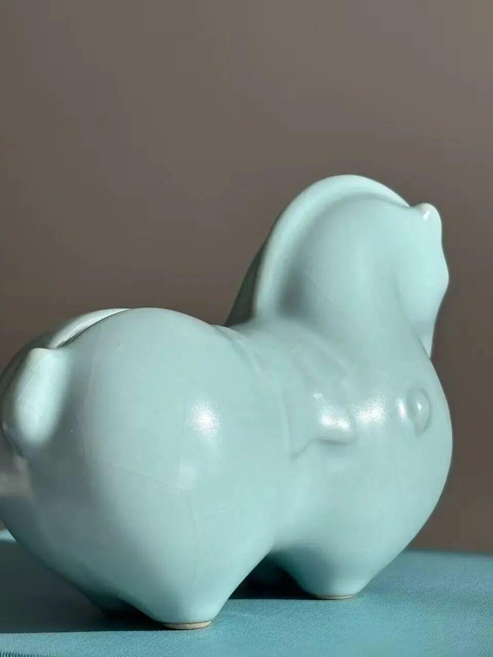 還好,我們爲大家挑選了來自傳承的汝瓷世家——汝山明的天青色的非遺汝瓷“有錢馬”。
