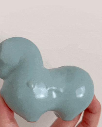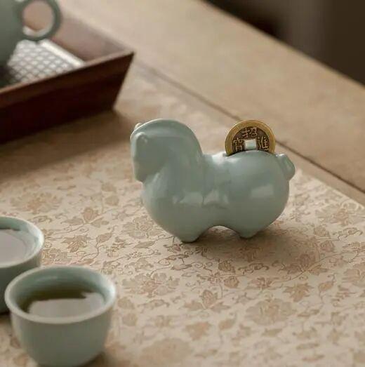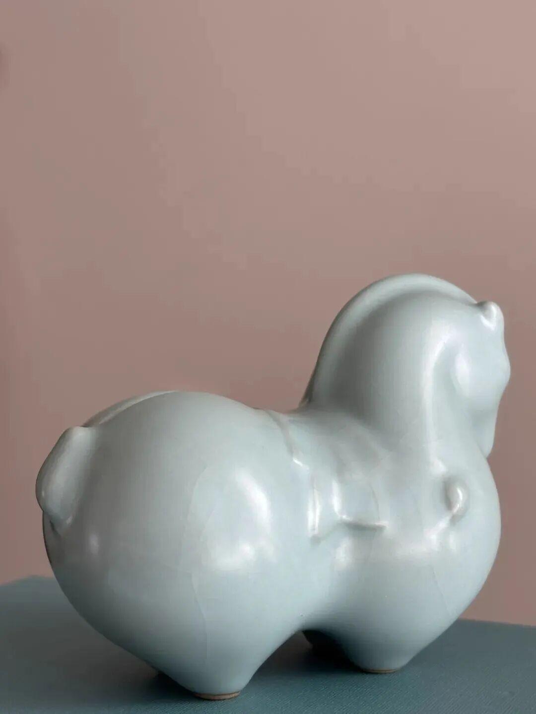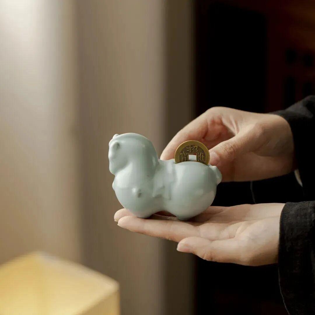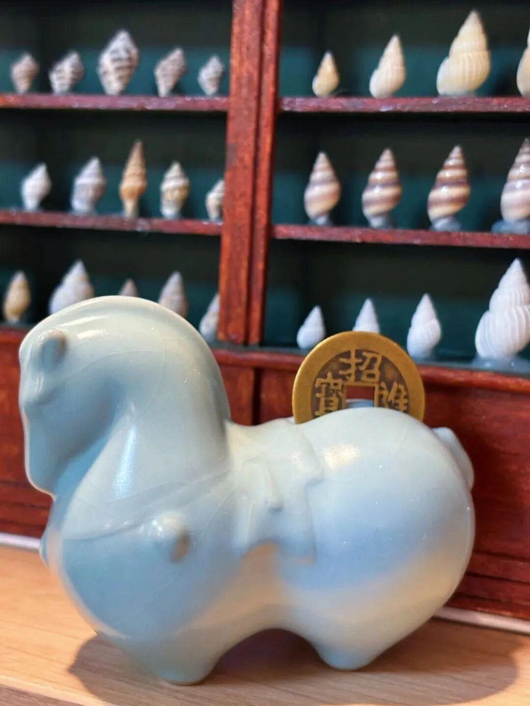 還好,我們爲大家挑選了來自傳承的汝瓷世家——汝山明的天青色的非遺汝瓷“有錢馬”。