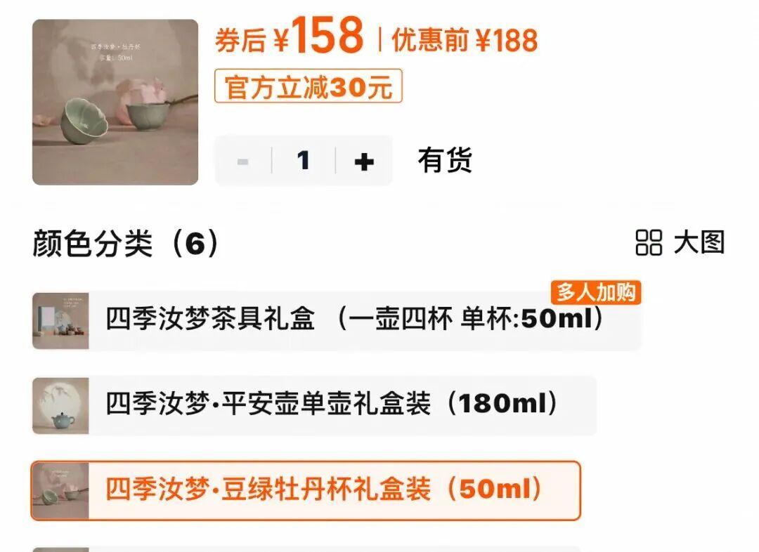 要知道,這隻豆綠釉汝瓷牡丹花神杯,單賣價格都是158元。