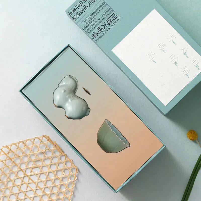 天青禮盒+紅色封套+手提袋,喜慶雅緻,送禮有面。