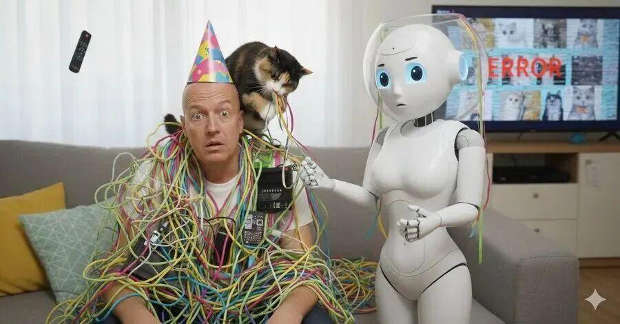 更多人得到的是壓力山大的畫面。機器人滿頭大汗,被任務清單包圍,表情有咱們職場社畜的那種疲憊感。