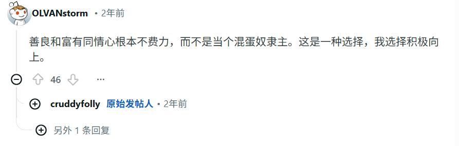 有網友在圖下面寫,看完覺得自己是個邪惡老闆。底下的回覆說,你不是邪惡老闆,你只是這個系統裏的一環,你對 AI 做的事,別人正在對你做。