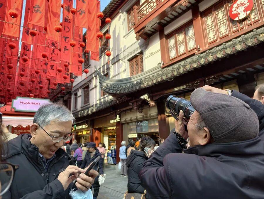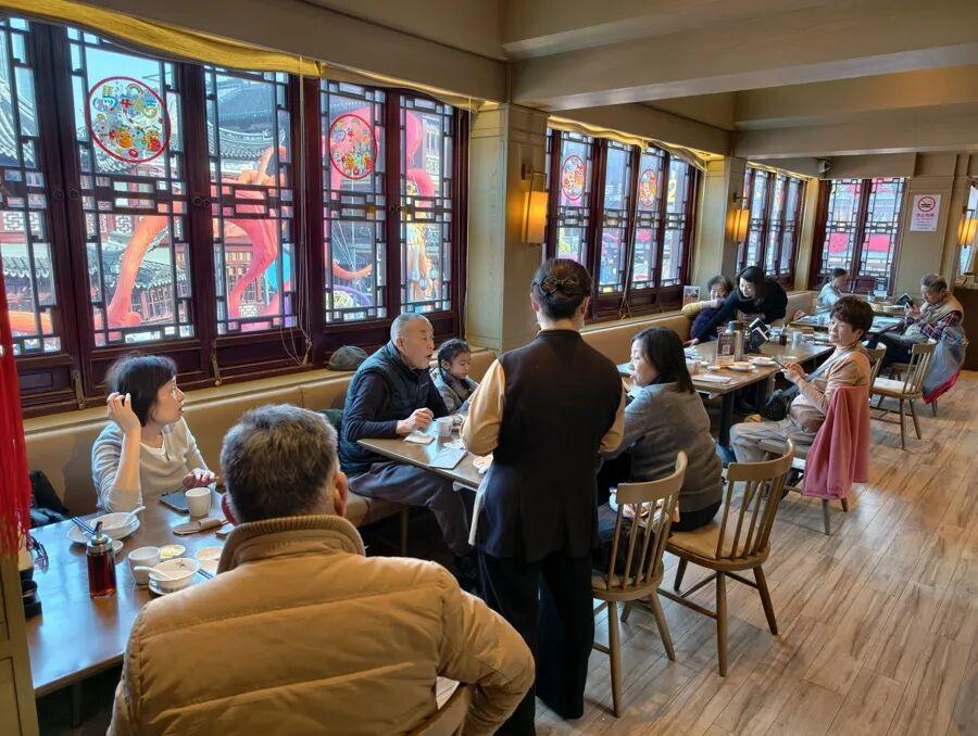 她觀察到,銀髮族來豫園商圈不僅爲了喫,而是很有“儀式感”:一大早來南翔饅頭店喫“早午茶”,接着去商圈打卡拍照。“我不知道的拍照打卡點,他們卻很熟悉”,她指了指餐廳的景觀位,“人多的時候,有的老年人寧可等一會兒,也要坐到景觀位上拍張照片,說是‘環境消費’。”