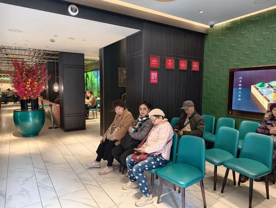隔壁的南翔饅頭店人均客單價低一些,人均消費七八十元,比其他主打小籠包的餐廳仍要高上一截。可即便工作日下午,店門口依舊排着等座的人羣。店經理遊玉敏也說,銀髮族消費力很高,“不僅自己來,還帶着小輩、孫輩來,復購率非常高。”