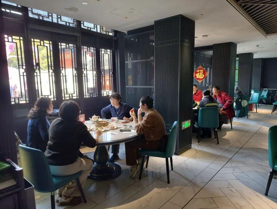工作日下午二時許,記者來到豫園九曲橋畔“綠波廊”餐廳,驚訝地發現,門口竟然有人等座,都是中老年人。一問,他們打算喫下午茶,“這裏的點心很出名,很多元首夫人都來喫過,我們要喫同款。喝喝茶,喫喫點心,等到天黑了,正好賞燈。”