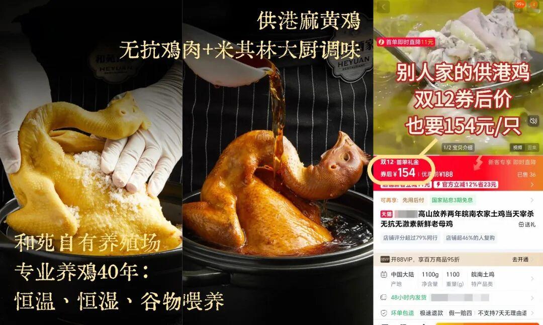 尤其在和苑堂食菜單上,相同規格、同源同宗、出自同一批大廚之手的鹽焗雞和豉油雞,價格是:288元/只,148元/半隻!