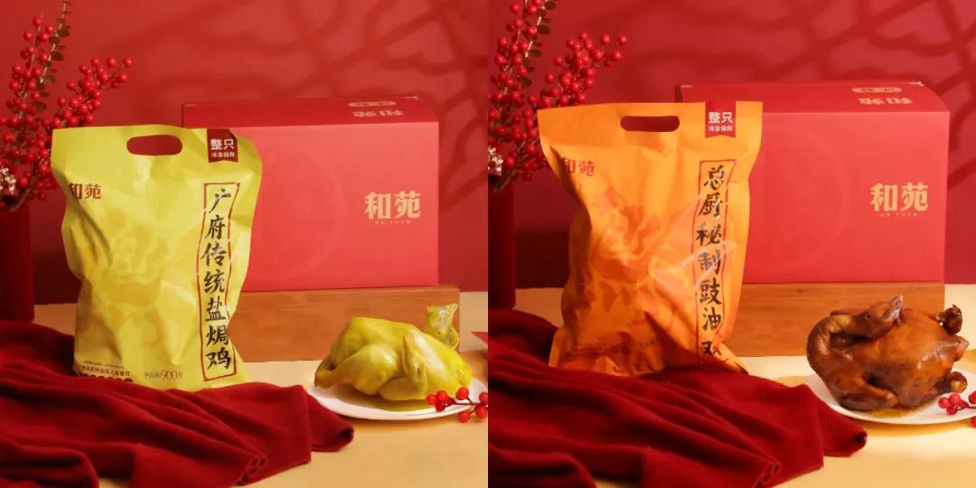 和苑品牌還專門爲這兩隻雞定做了——“無雞不成宴,鹽焗雞/豉油雞禮盒”。