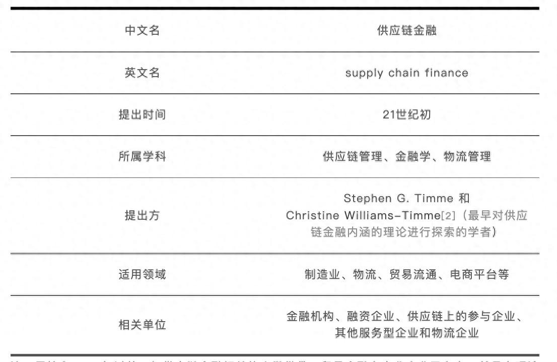 對供應鏈金融內涵的理論探索最早起源於Timme等學者,他們認爲,供應鏈金融是爲實現供應鏈的整體目標,供應鏈中的一些參與方積極與供應鏈外部的金融服務提供商(銀行、保理商等)進行協作,並在協作過程中將供應鏈內部的物流、信息流和資金流以及供應鏈運營過程、供應鏈其他參與主體和全部資產狀況納入考慮。