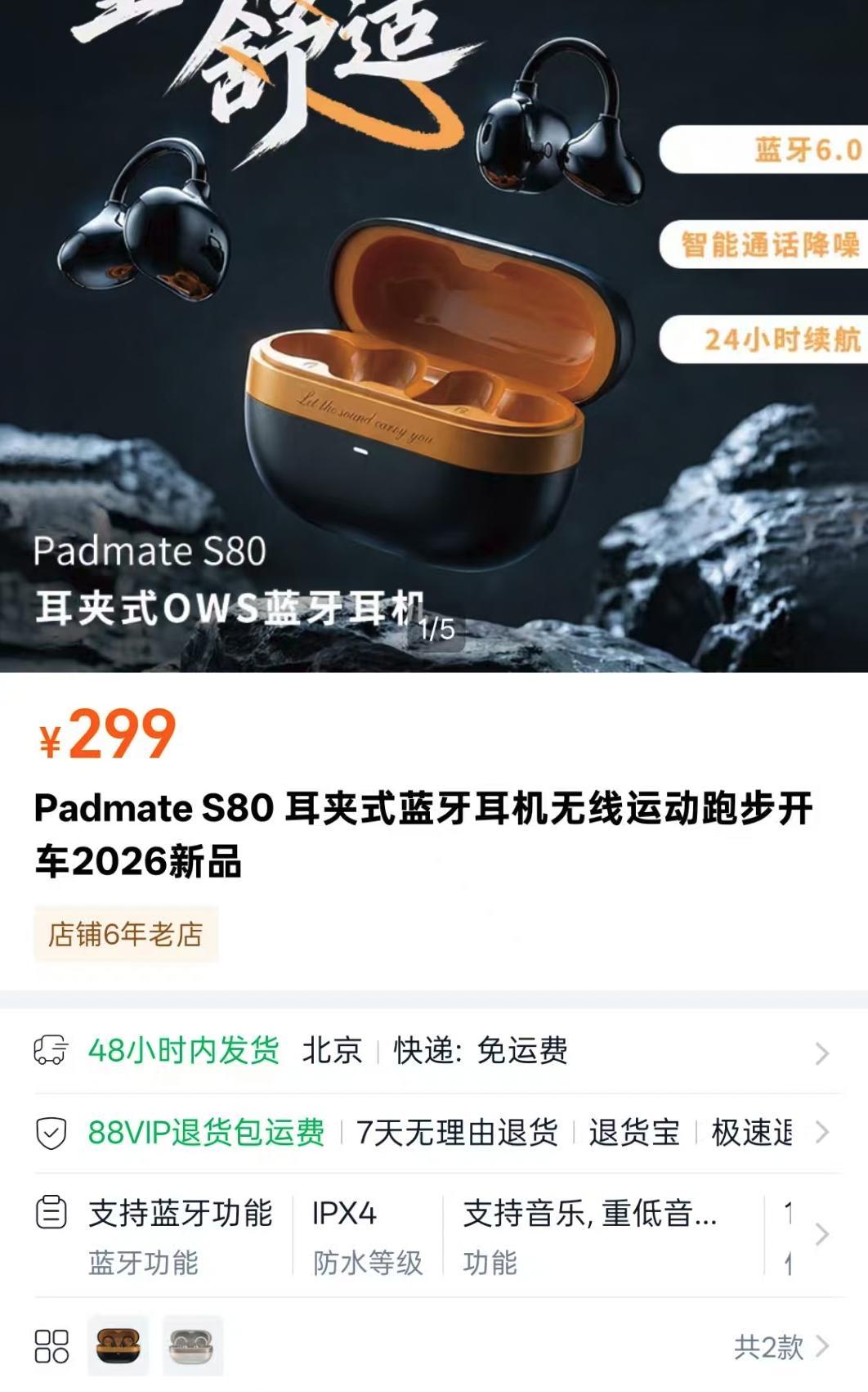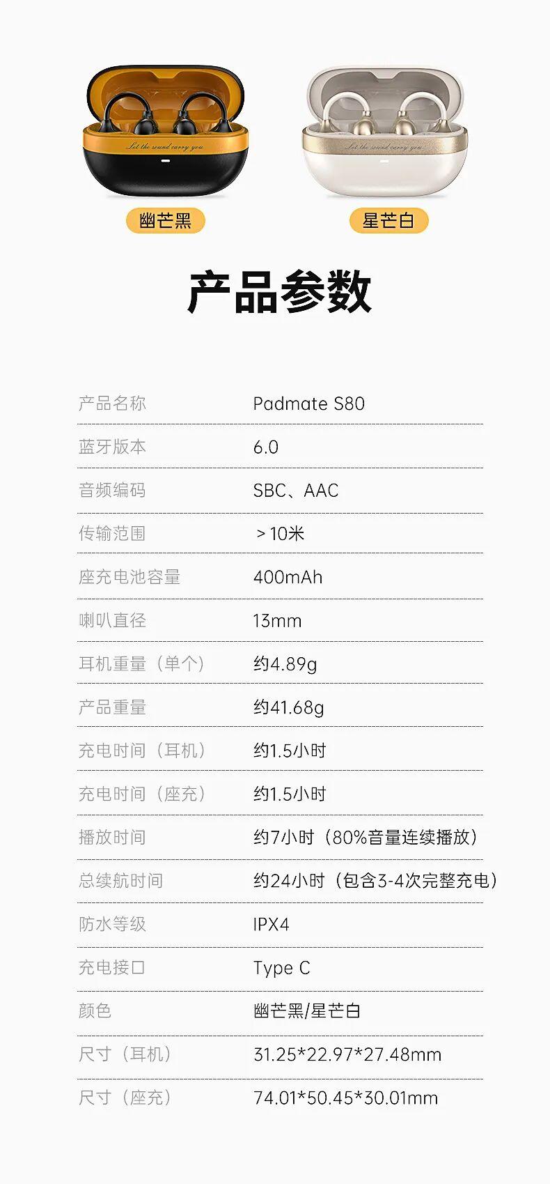 派美特2026年旗艦單品·S80耳夾耳機,官方店鋪開售價 299 元