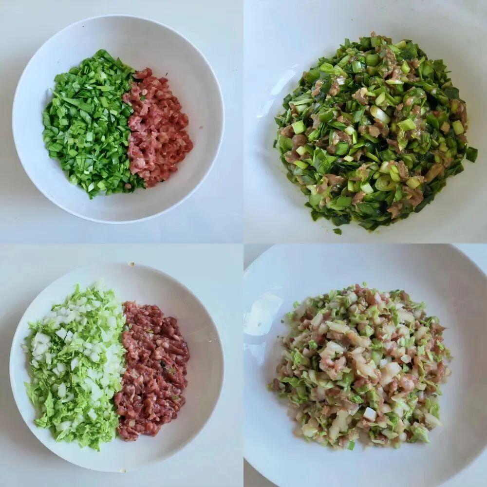 圖:韭菜:肉餡=1.5:1(上),白菜:肉餡=1.5:1(下)