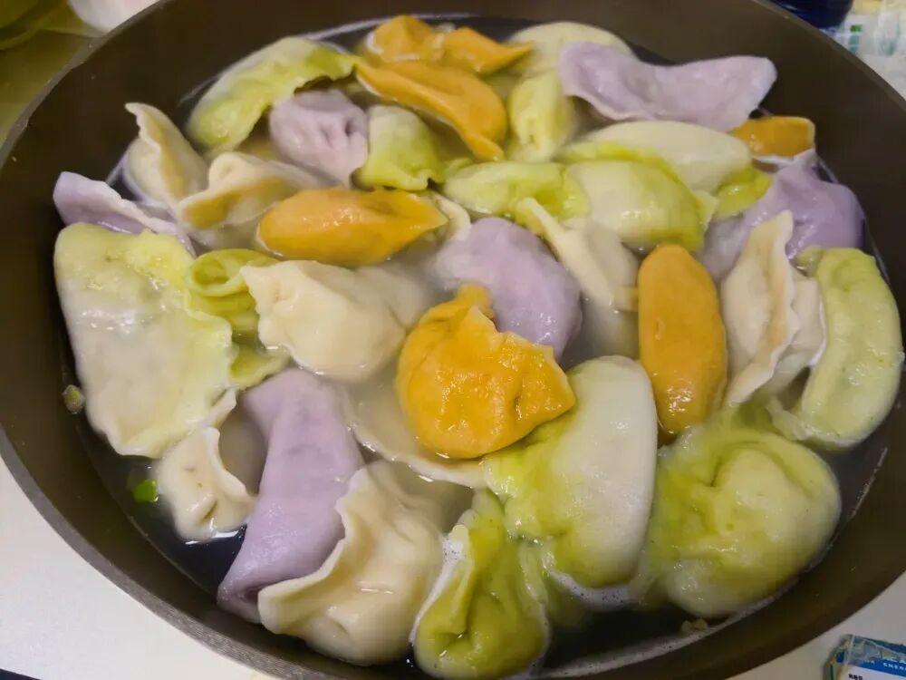 圖:煮熟後的彩色餃子,自己煮的+自己拍的