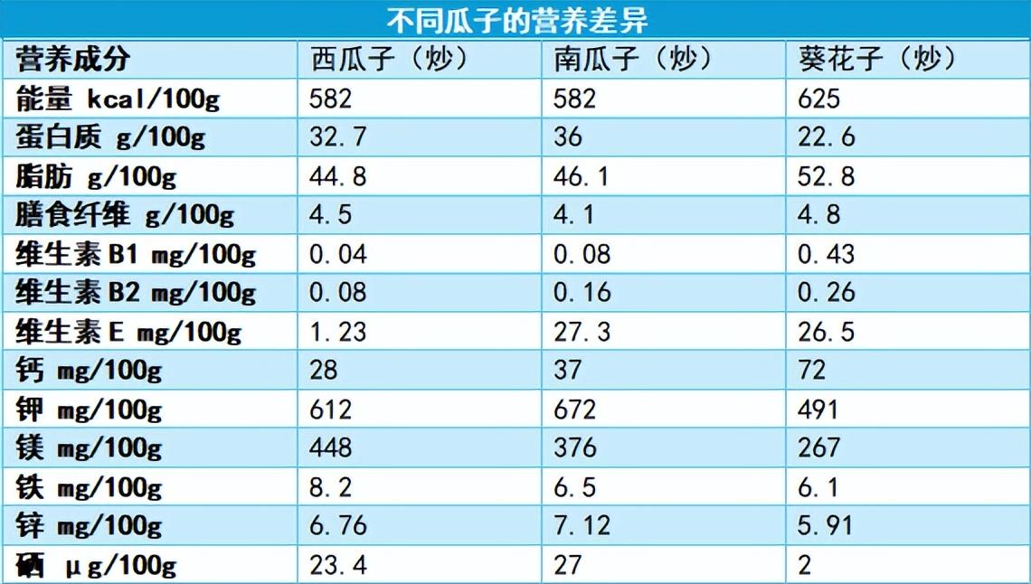 瓜子種類多,營養各異
