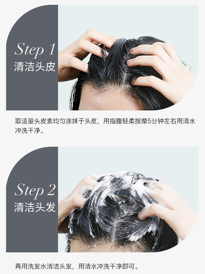 ② 先用頭皮素清洗頭皮,再用防脫洗髮水 進行日常的洗髮步驟。這一套流程下來,再油的頭皮都能洗的乾乾淨淨!