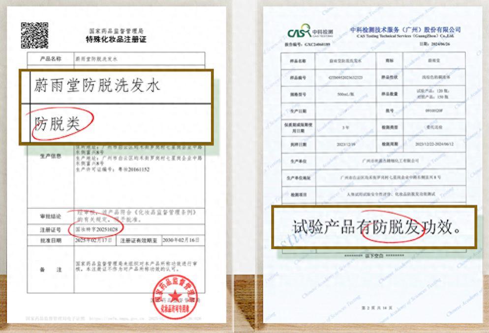 先簡單跟大家小科普一下,不是所有防脫洗髮水都有防脫認證,購買時一定要認準包裝上的【國妝特字+編號/國妝特進字+編號】。