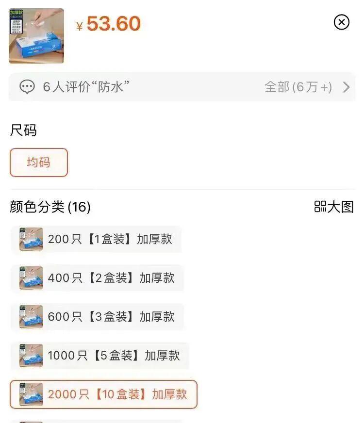 一次多買點,算下來一對手套才5分錢左右丨某寶截圖